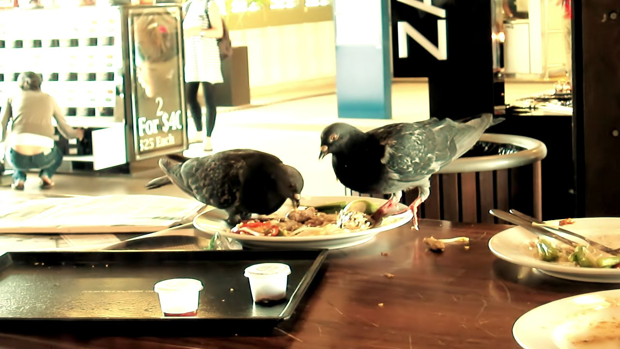 Some messing pigeons going crazy over some Thai food at Manly Wharf before being chased away.